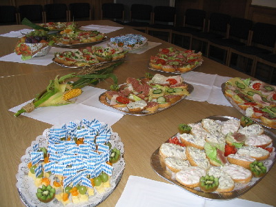 Halbe belegte Brötchen, in verschiedenen Sorten für je 1,30 €. Fischbrötchen 2,30 € Wir garantieren für die Frische unserer Produkte. Starten Sie mit einem guten Frühstück in den Tag. Wir liefern belegte Brötchen, Suppen, Canapés , Torten , und Gebäck zur Frühstücks-Mittags-und Kaffeepausen in Büros zur Firmen oder Partys, private Haushalte, auch zu Meetings und festlichen Anlässen so wie Firmenpräsentationen !