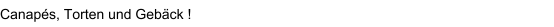 | Auf Wiener Toastbrot(rund) | | 6x Canapés mit Räucherlachs | | 6x Canapés mit Guacamole-Forellenrogen | | 6x Canapés mit rote Lump-Eiern | | 6x Canapés Tex-Mex/Roquefort | | Auf Mehrkornbrot (quadratisch) | | 6x Canapés orientalisch (Backobst) | | 6x Canapés mit Enten-Rohschinken-Mousse | | 6x Canapés mit Krebsfleisch-/Krabbenmousse | | 6x Canapés mit Sardellen | Gewicht 430g 54,00 € |
